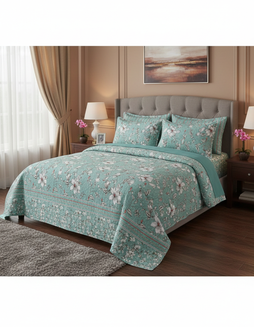 (Spring Cherry Blossom)Premium 6-Piece Vickey Razai (Comforter) Set - 100% Pure Cotton Peach Floral Double Bedding with 4 Pillow Covers.